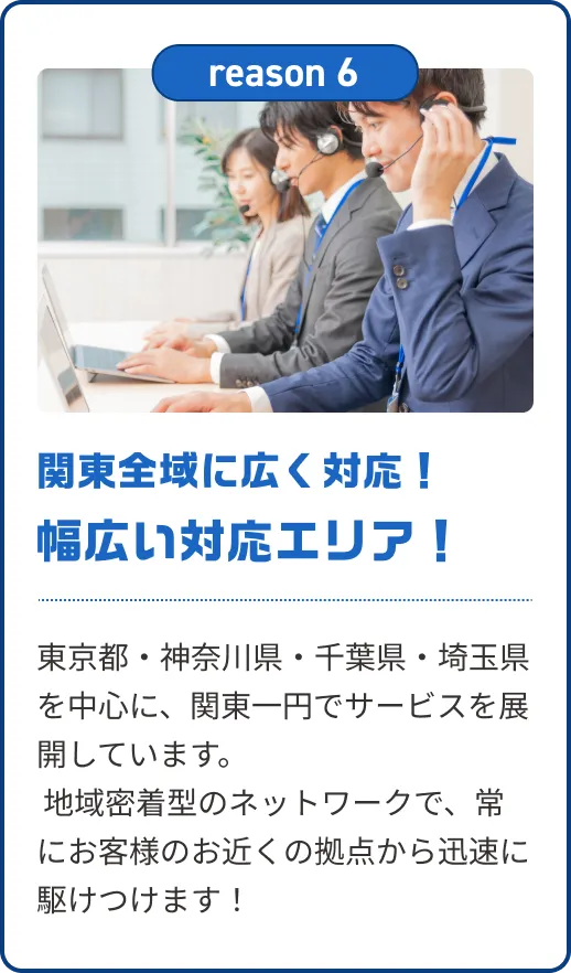 - もちろん、年中無休で24時間いつでもご依頼いただけます。深夜や早朝でも追加料金はかかりませんので、どうぞ安心してお問い合わせください。